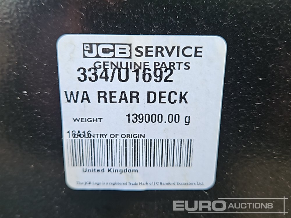 Unused JCB WA Rear Deck Component
