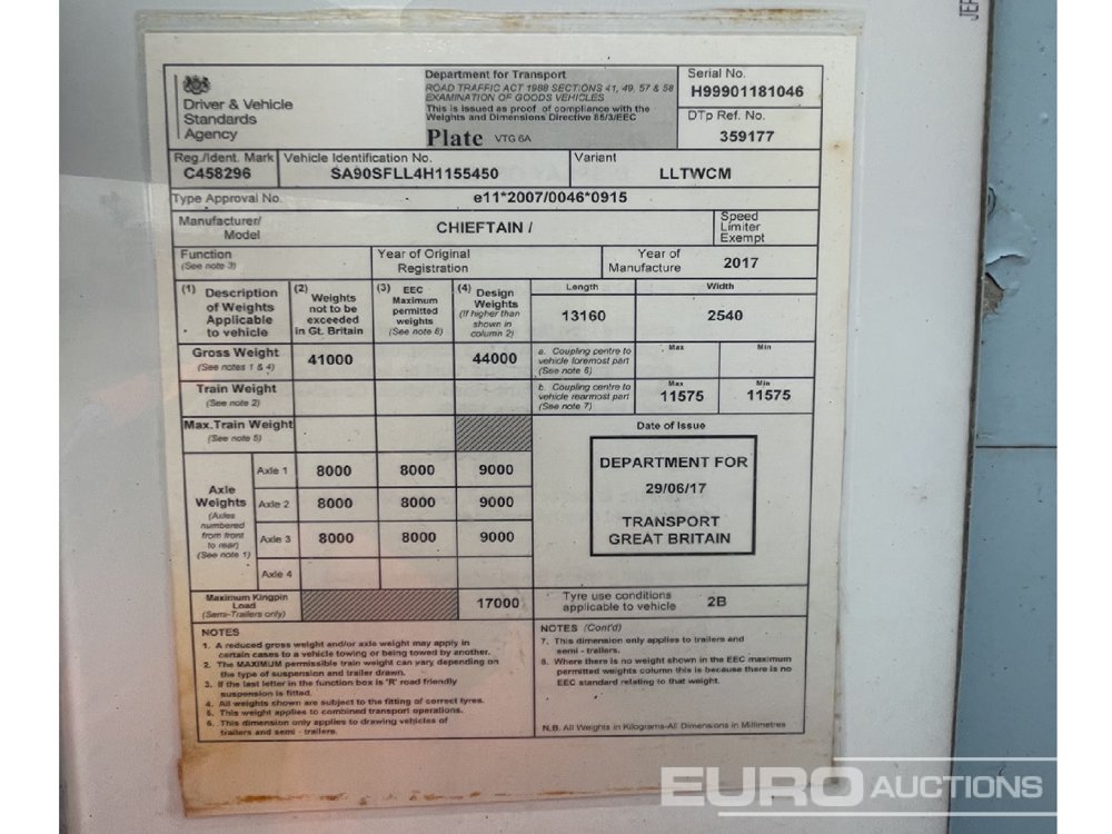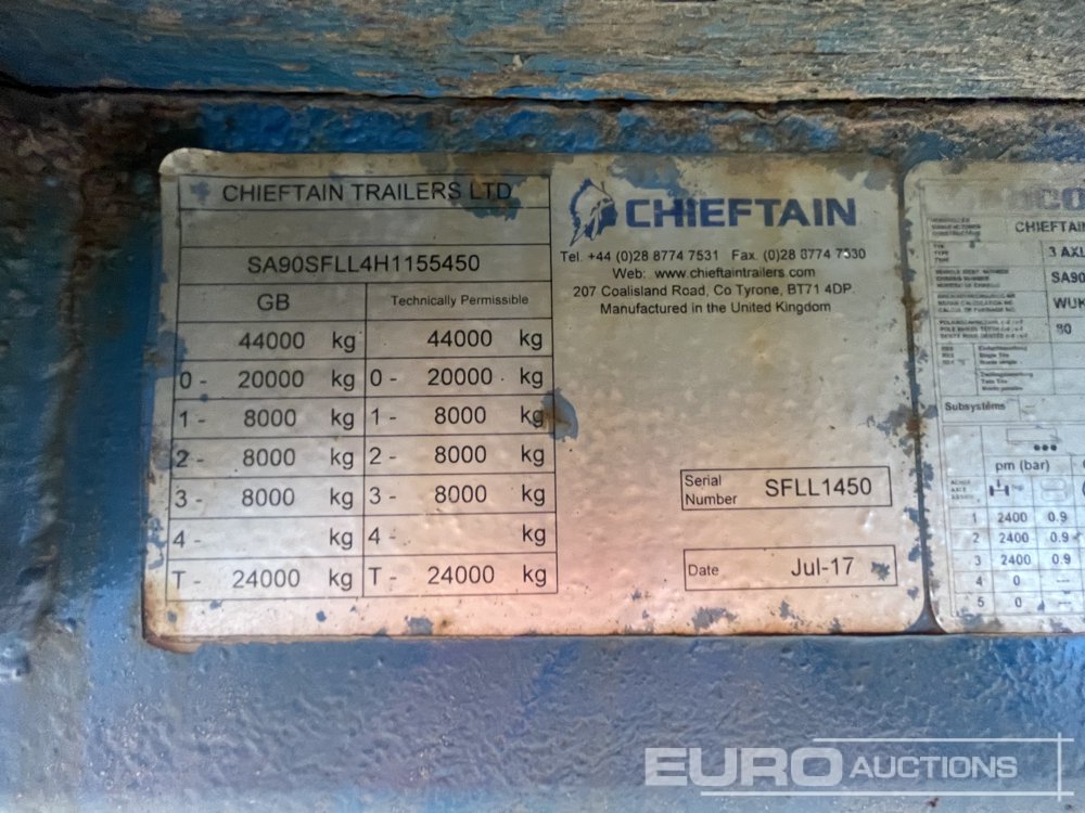 2017 Chieftain Sfll Tested till Oct 26 Tri-axle low loader Rear lift (non steering) Galvanized flip out adjustable rear ramps Swan neck ramps built into floor Pull out outriggers Spare Wheel & tyre - SA90FLL4H1155450
