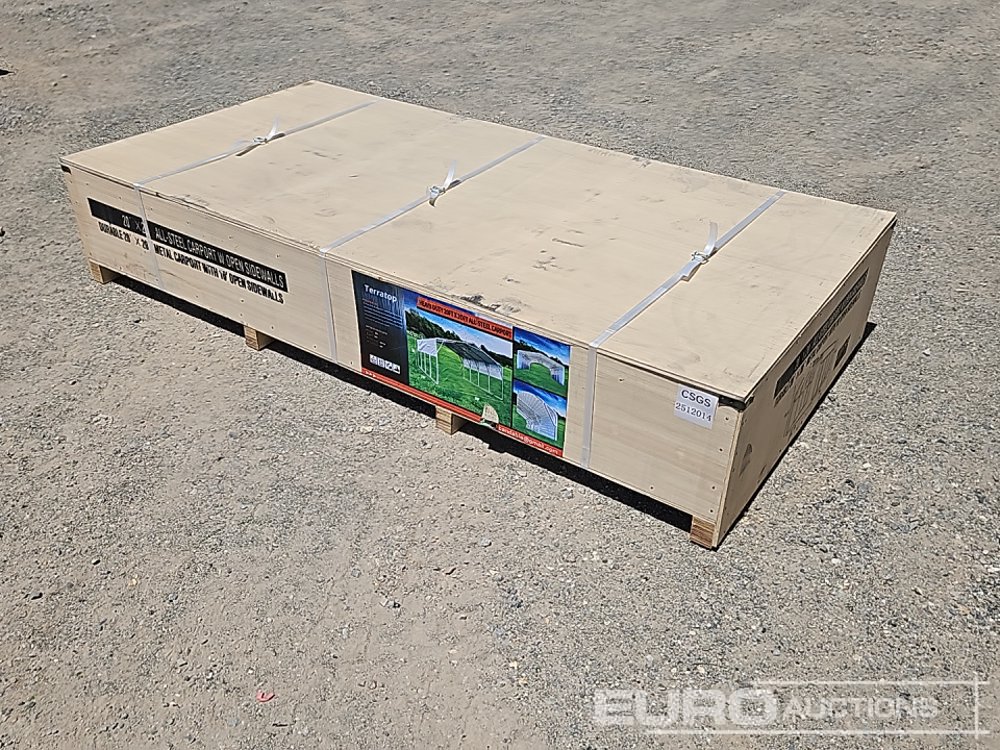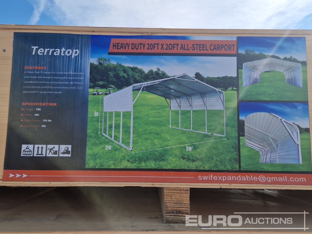 Unused 2025 Terratop 20x20' All-Steel Carport c/w Open Sidewalls - CSGS2512027-1