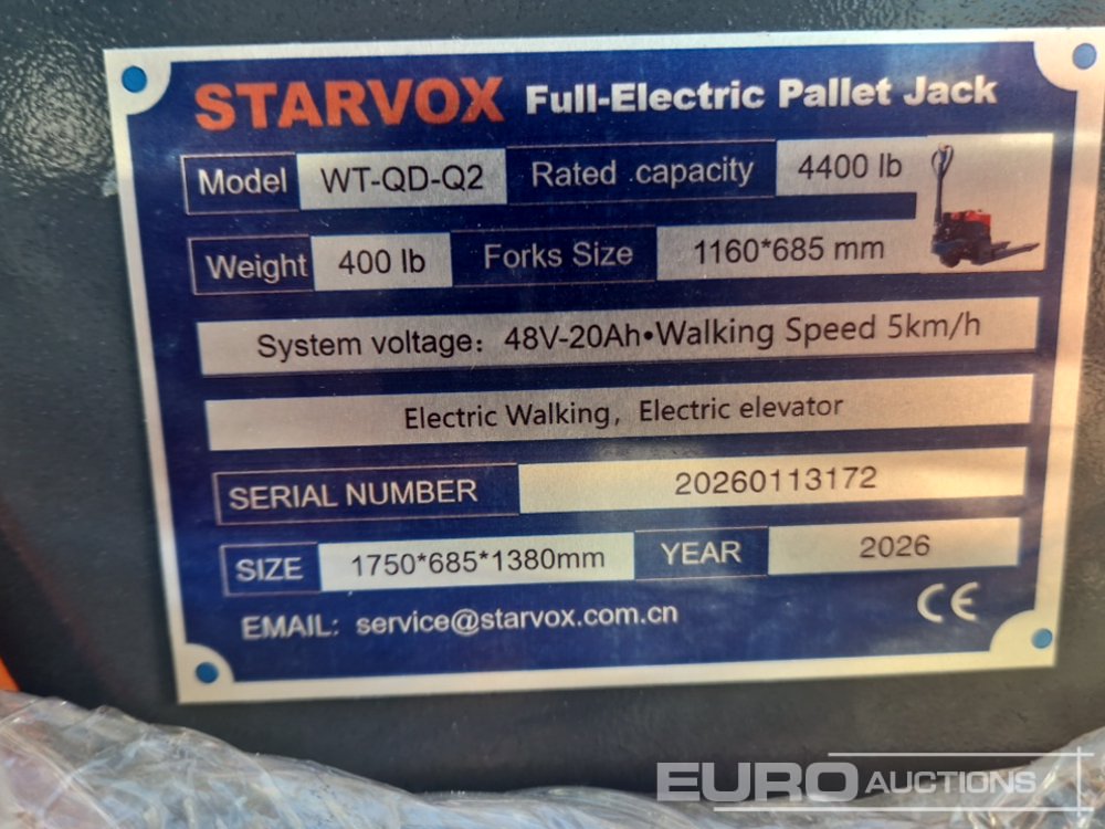 Unused 2026 Starvox WT-QD-Q1 2T Electirc Pallet Truck - 20260113172