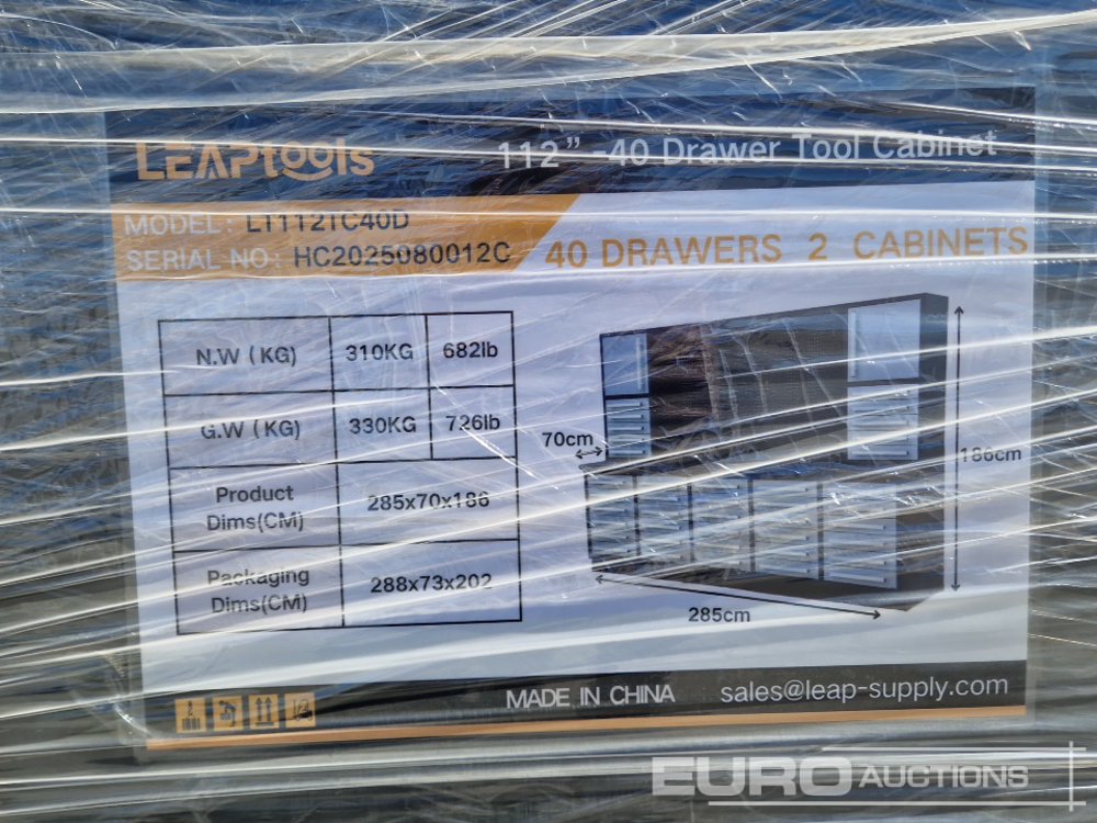 Unused 2026 LEAPTOOLS LT112TC40D 112”-40 Drawer Tool Cabinet - HC2025080012C