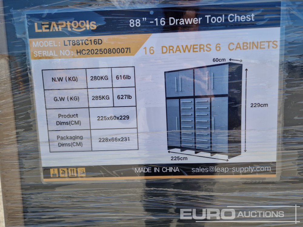 Unused 2026 LEAPTOOLS LT88TC16D 88”-16 Drawer Tool Chest - HC2025080007I