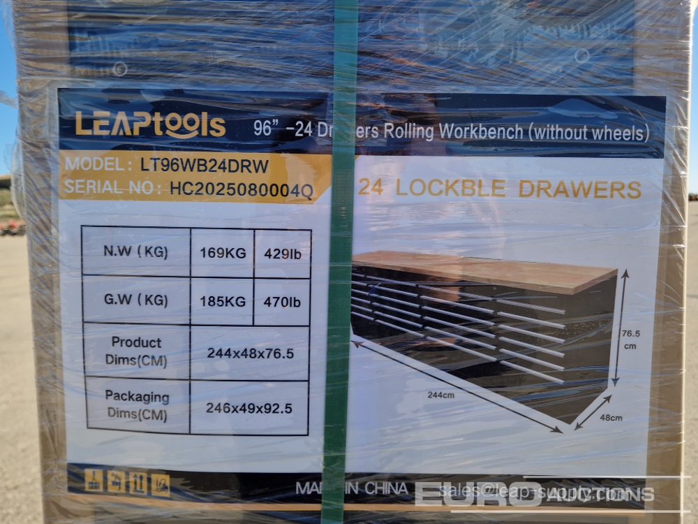 Unused 2026 LEAPTOOLS LT96WB24DRW 96"-24 Drawers Rolling Workbench Without Wheel - HC2025080004Q