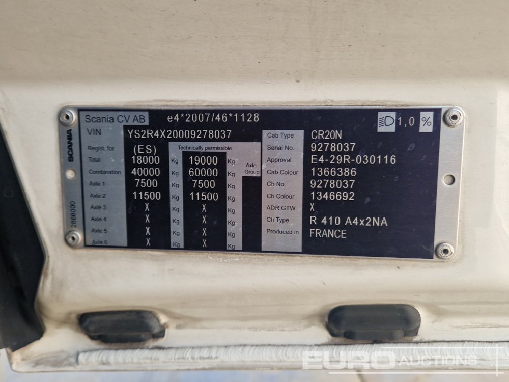 Scania R410 4x2 Tractor Unit, Automatic Gearbox, 2 Seats, Retarder, Air Suspension, BT, A/C - YS2R4X20009278037