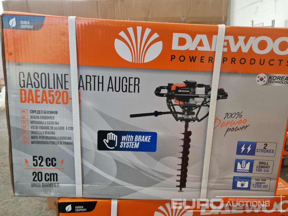 Unused Daewoo DAEA520-B Gasoline Earth Auger (6 of) , 200x1000mm Drill (6 of) - 240082271