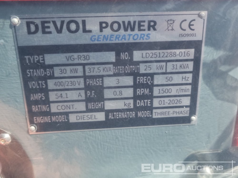 Unused 2026 Devol VG-R30 30kW Generator - LD2512288016