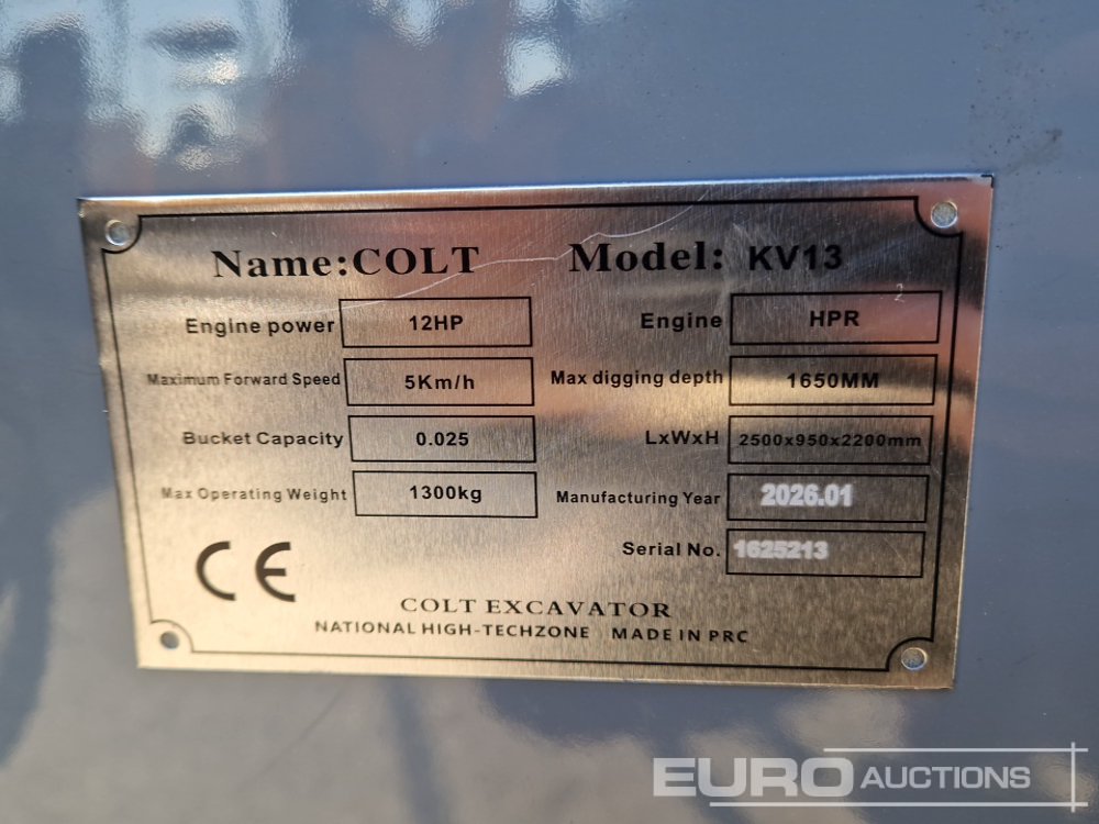 Unused 2026 Colt KV13 Rubber Tracks, Blade, Piped, Bucket - 1625213