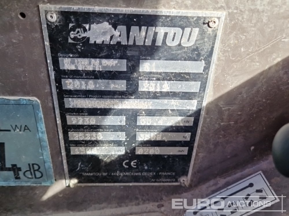 2018 Manitou MT1335 Easy Turbo Telehandler, Joystick Controls, WLI, QH, Cable Reel, Stabilisers, Forks (Broken Fuel Tank - Sold by Photos) - MAN00000K01008904