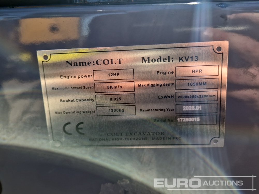 Unused 2026 Colt KV13 Rubber Tracks, Blade, Piped, Bucket - 17250015