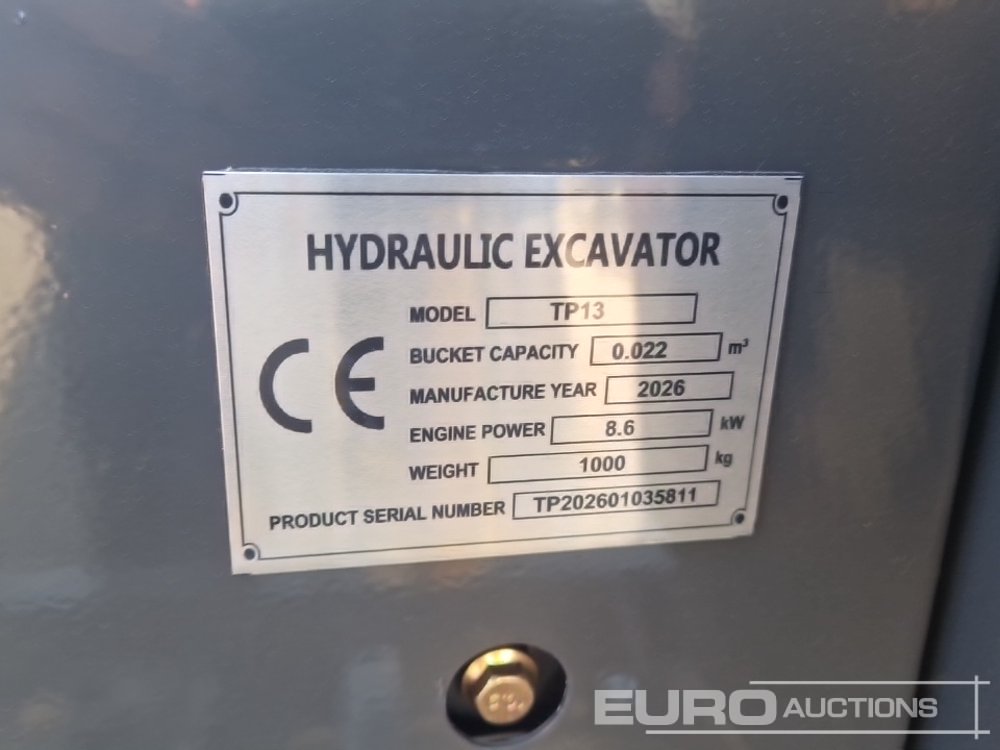 2026 Hydraulic Excavator TP13 Rubber Tracks, Blade, Bucket - TP202601035811
