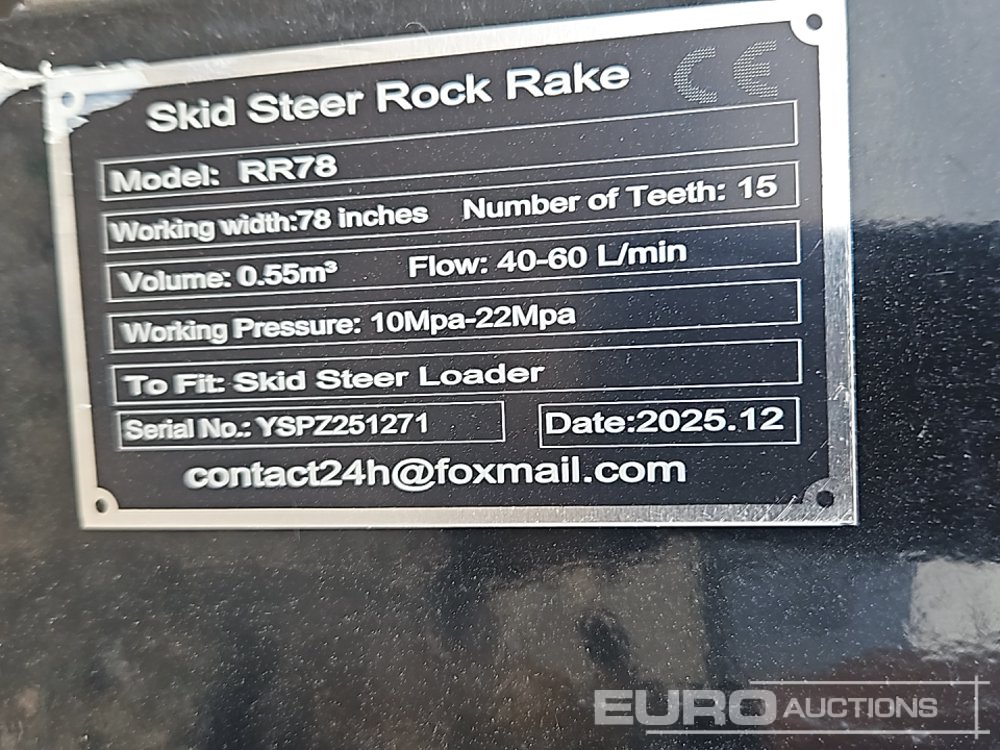Unused 2026 Captok CK-RR78 Rock Rake to suit Skidsteer - YSPZ251271