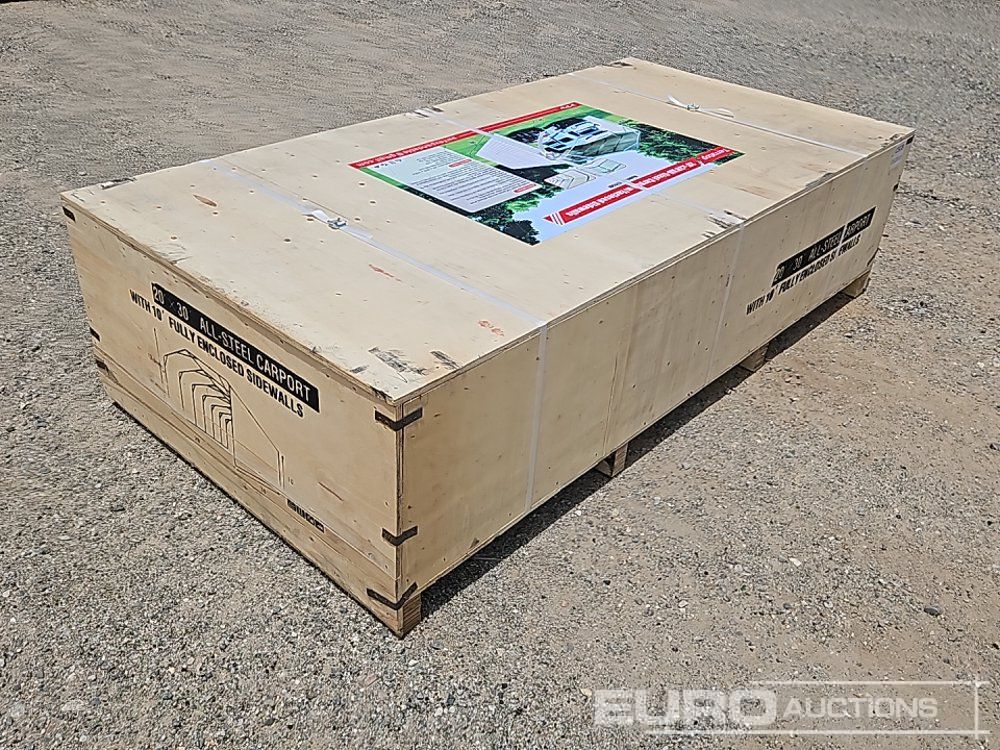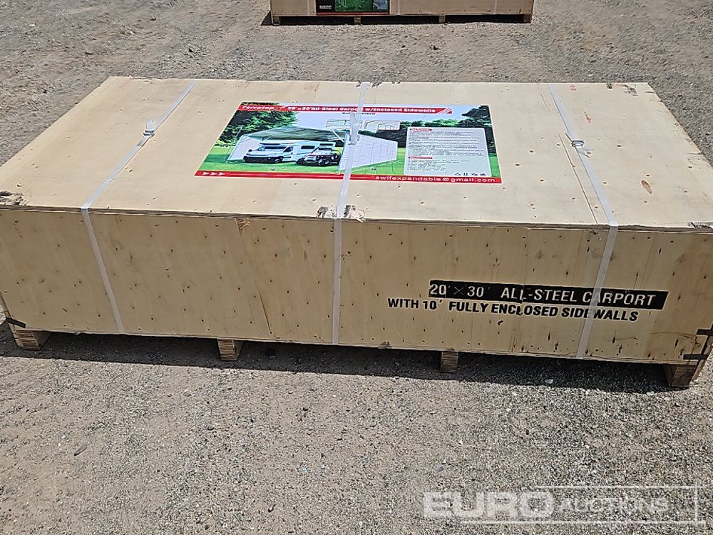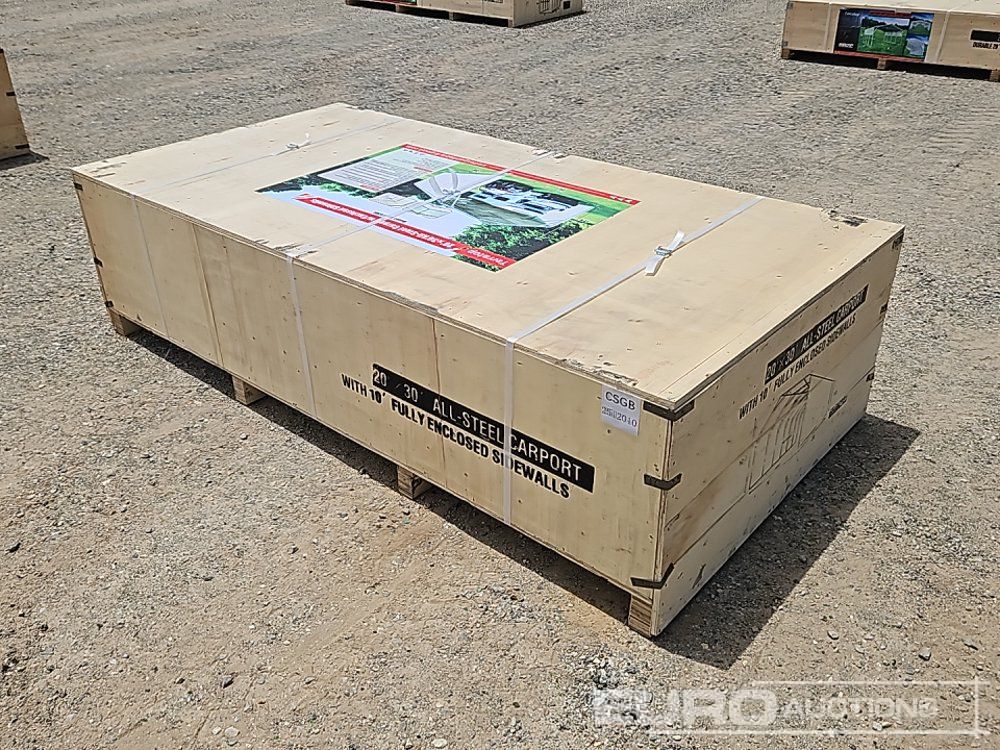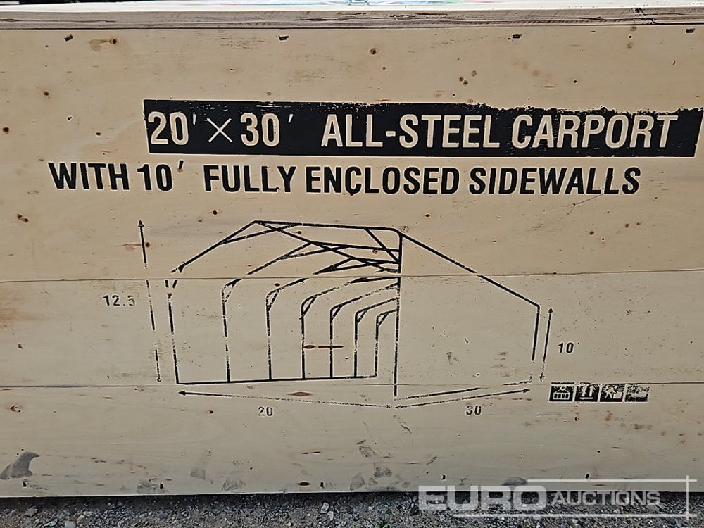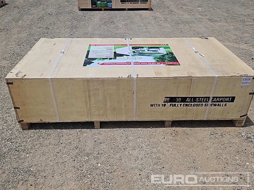 Unused 2025 Terratop MSC2030F 20x30x12' All-Steel Carport c/w Enclosed Sidewalls - CSGB2512014