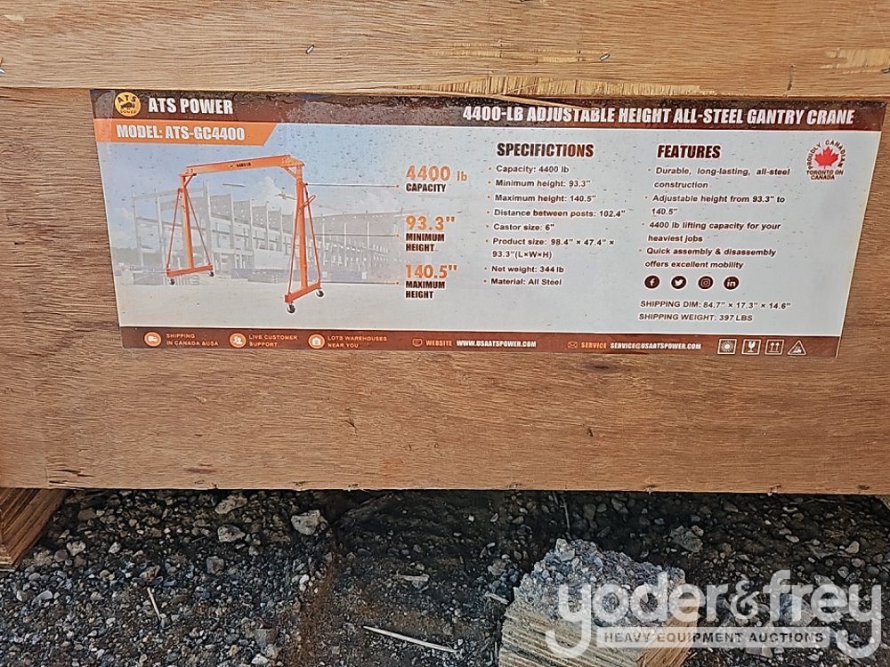 Unused ATS Power ATS-GC4400 4400 LB Adjustable Height All-Steel Gantry Crane - 540021605