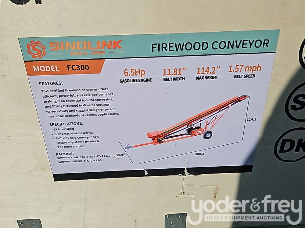 Unused 2025 STARVOX FC-300 Firewood Conveyor, Size:11.8 x 372", 7 Hp, Manual Winch For Height Adjustment: 800 Lbs - A2503062566