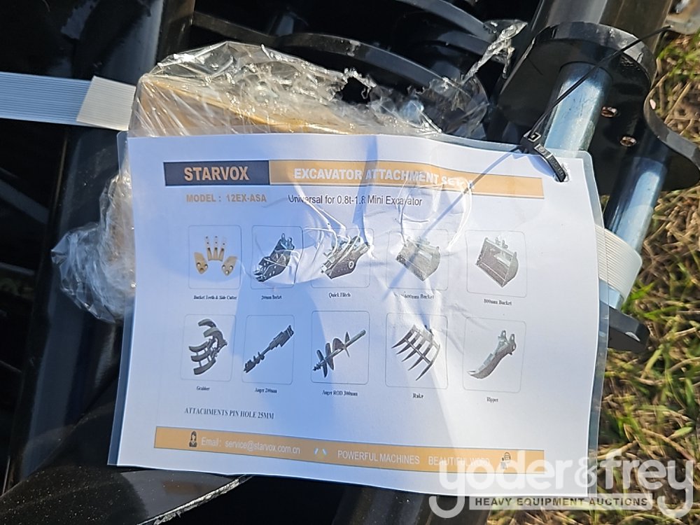 Unused 2025 Starvox 12EX-ASA Excavator Attachment Set c/w 8" Bucket, 24" Bucket, 32" Bucket, 8" Auger, 12" Auger, Rake, Ripper, Gripper, Bucket Teeth & Side Cutter(5) Attachment to suit Excavator - STV2025AS05091