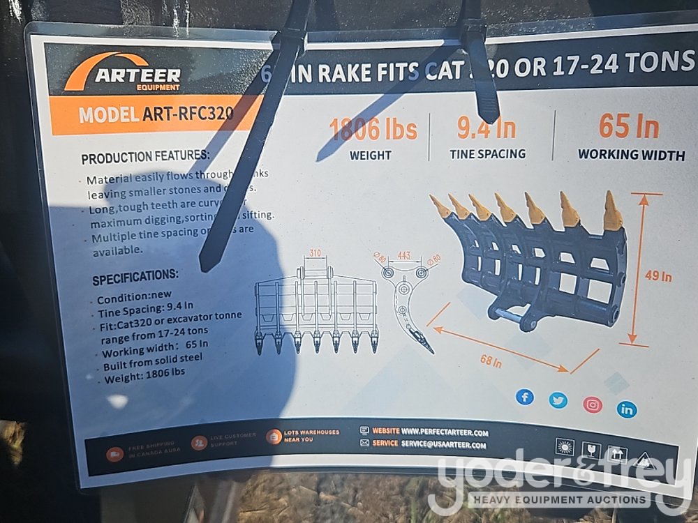 Unused 2025 Arteer ART-RFC320 65" Rake to suit 17-24 Ton Excavator, CAT 320 - ART2025CK88805636