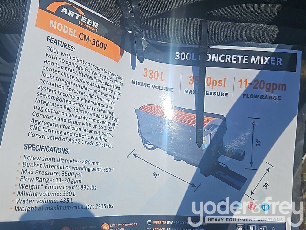 Unused 2025 Arteer CM-300V 300L Concrete Mixer to suit Skidsteer - ART2025CK88805640