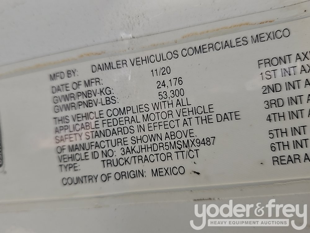 2021 Freightliner Cascadia 6x4 Truck Tractor, Sleeper Cab, Detroit DD13 Engine, Eaton Fuller Automatic 12 Speed Transmission, A/C, 12,000lb Front, 40,000lb Rears, 52,000lb GVWR - 3AKJHHDR5MSMX9487