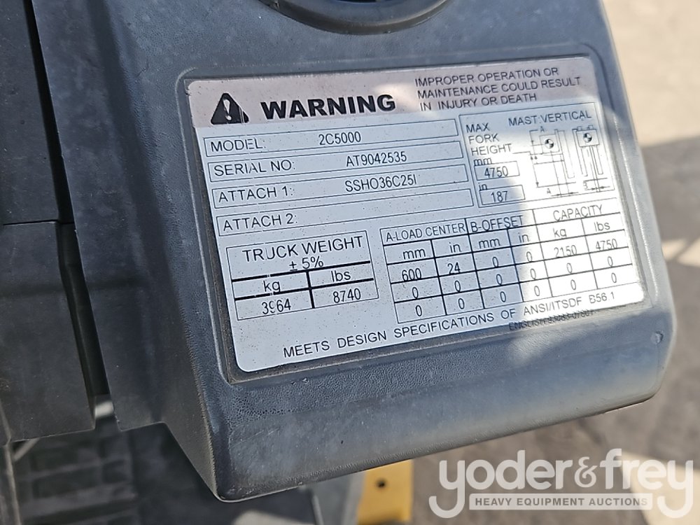 2016 CAT 2C5000 LPG Forklift, 5,000lb Capacity, 3 Stage Mast, Side Shift - AT9042535