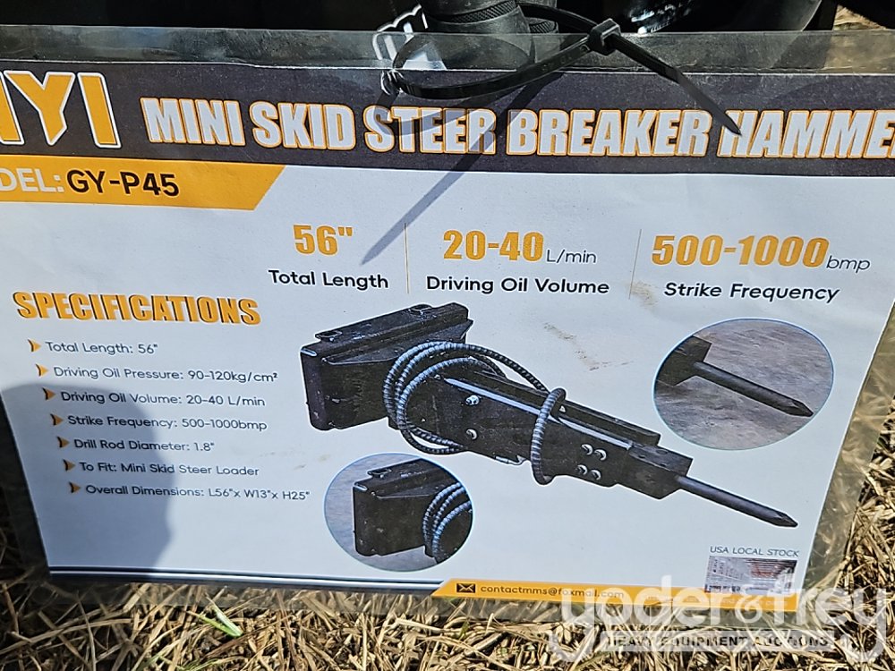GIYI GY-P45 Breaker to suit Mini Skidsteer, Total Length;56Driving Oil Pressure(kg/cm2):90-120Driving Oil Volume(L/min): 20-40Strike Frequeney(bmp):500-1000Drill Rod Diameter: 1.8" - PSC45251042