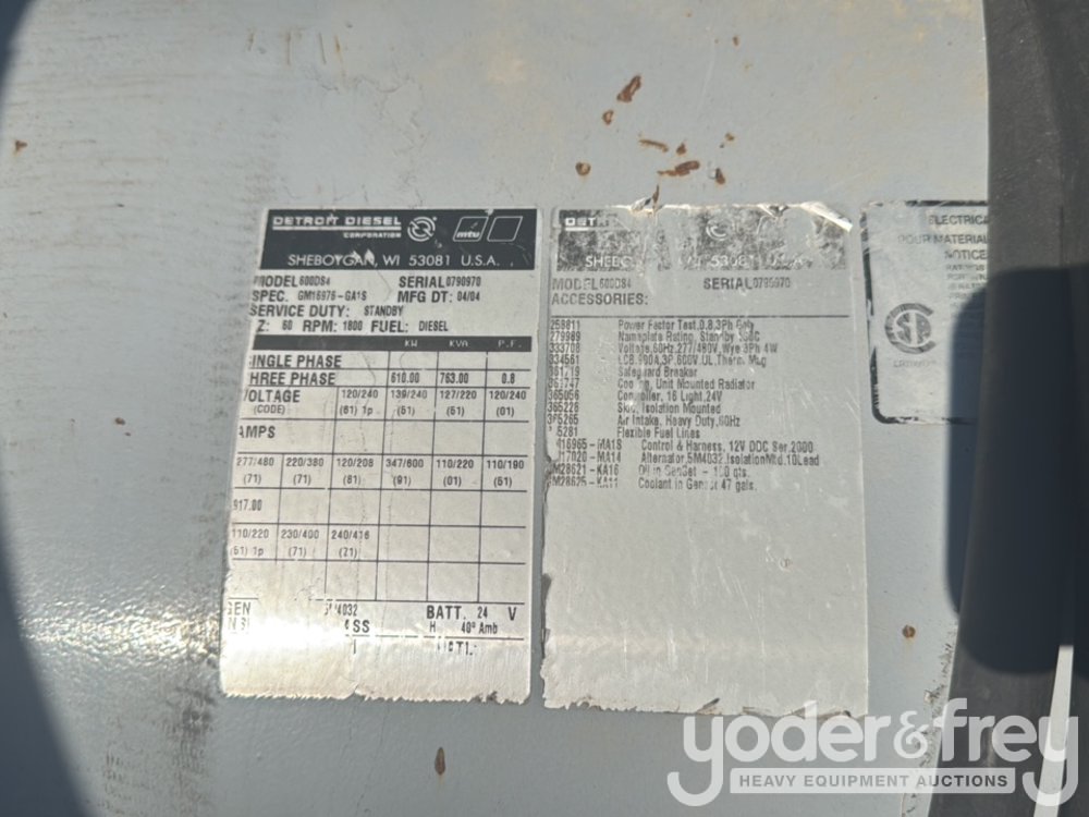 MTU 12v2000 600KW Generator, Detroit Diesel V12 Engine - 5262001010