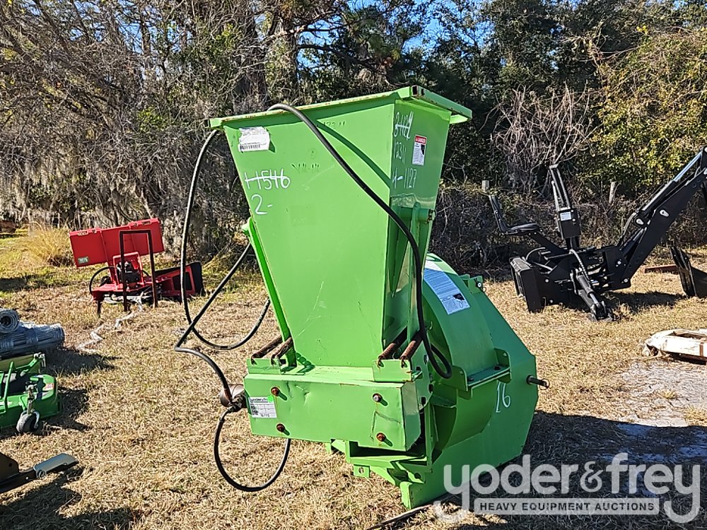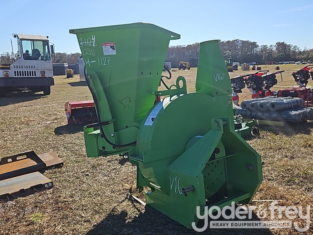 Unused PTO Chipper, 70HP required, 4 knives, dual hyd feed rollers, 435lb rotor, no driveshaft or discharge chute