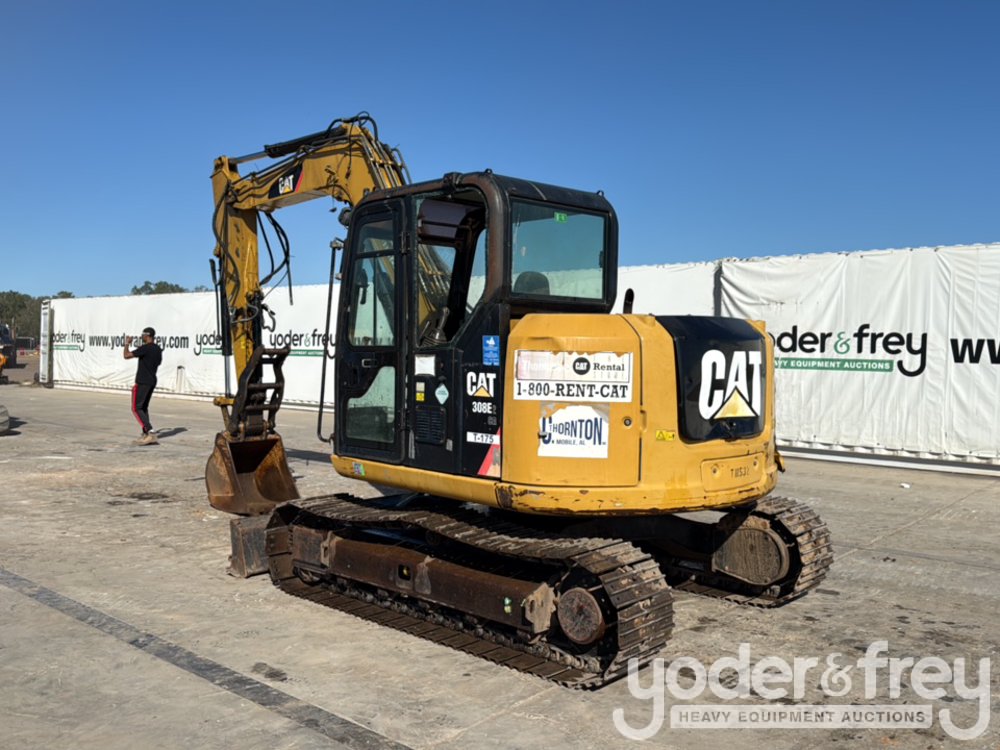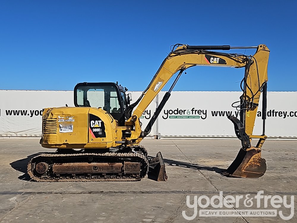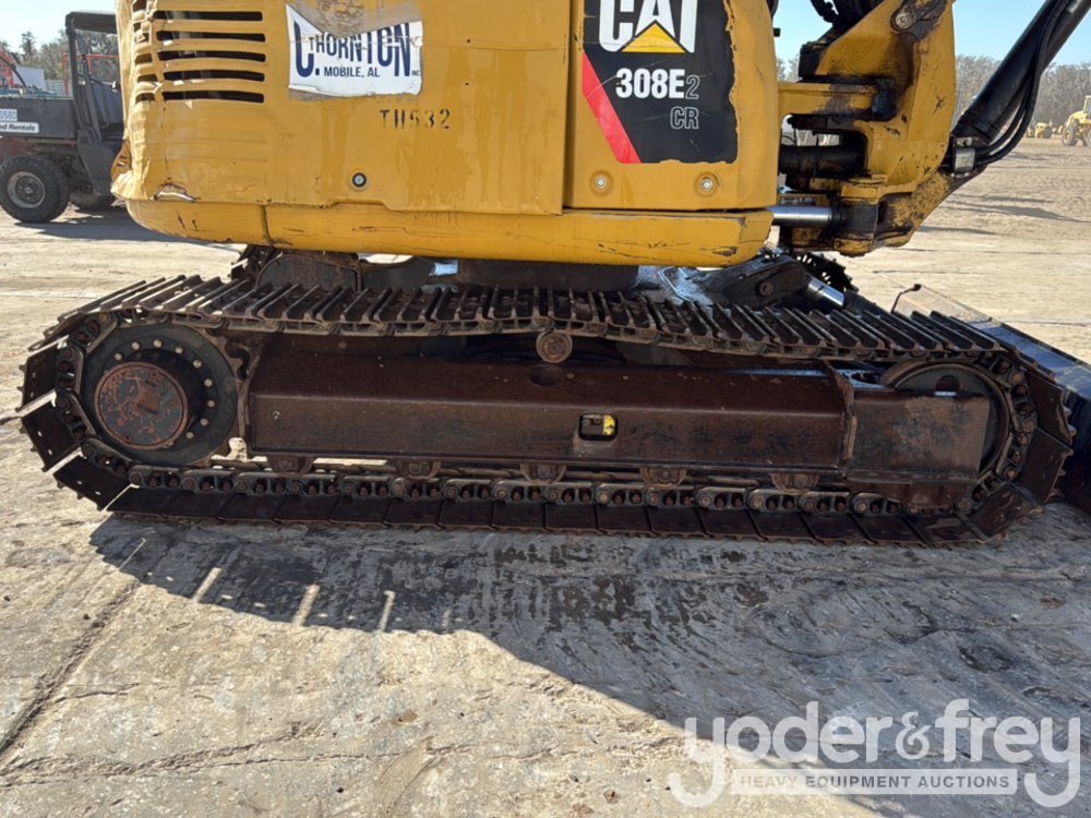 2013 CAT 308E2CR Excavator, Cab, A/C, 24" Steel Tracks, Blade, Swing Boom, Aux Hydraulics, QC, 24" Bucket, Hydraulic Thumb (Meter Reading: 5128 Hours) - CAT0308ETTMX00795