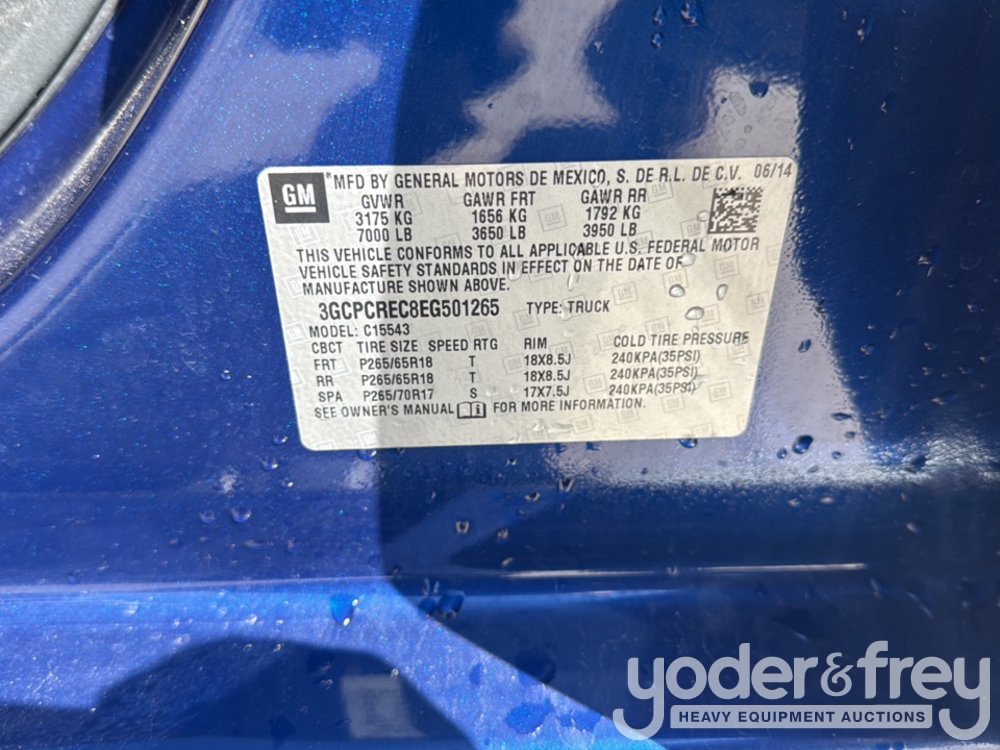 2014 Chevrolet Silverado 1500 4x2 Crew Cab Pickup Truck. 5.3L V8 OHV 16V Engine, 6 Speed Automatic Transmission, Rear View Camera (Meter Reading: 218122 Miles) - 3GCPCREC8EG501265