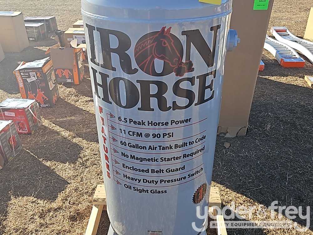 Iron Horse 60 Gal.Shop Air Compressor, 6hp, V-Twin Cast Iron Pump,Hi-Flo, 135 PSI, 11.2 CFM, 1 Yr. Factory Warranty - 600078175