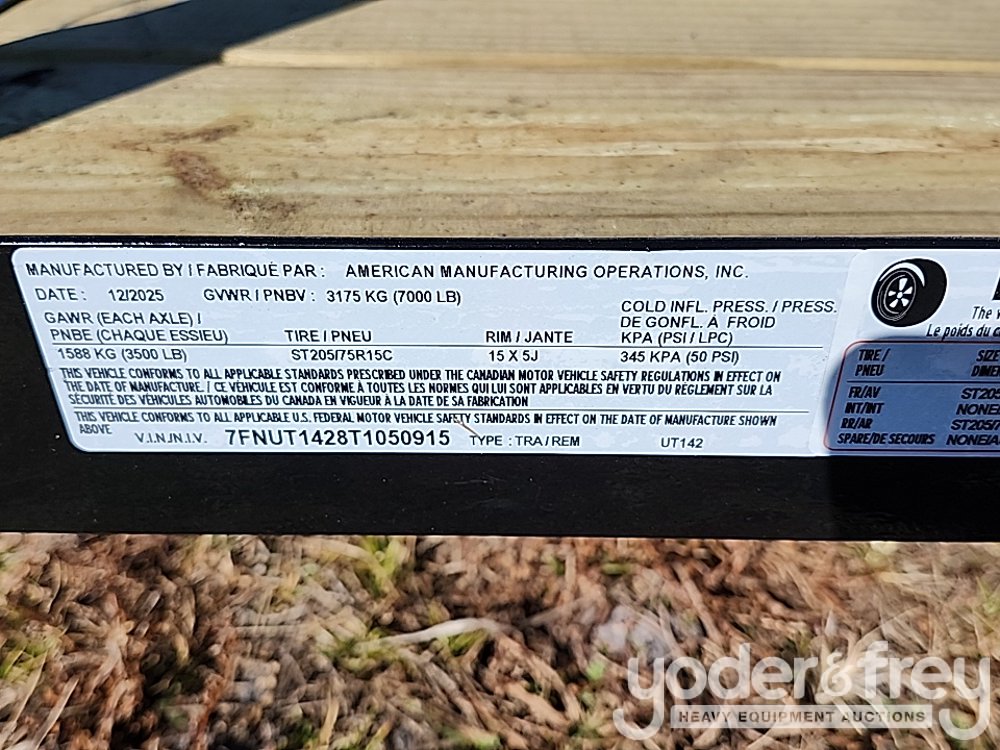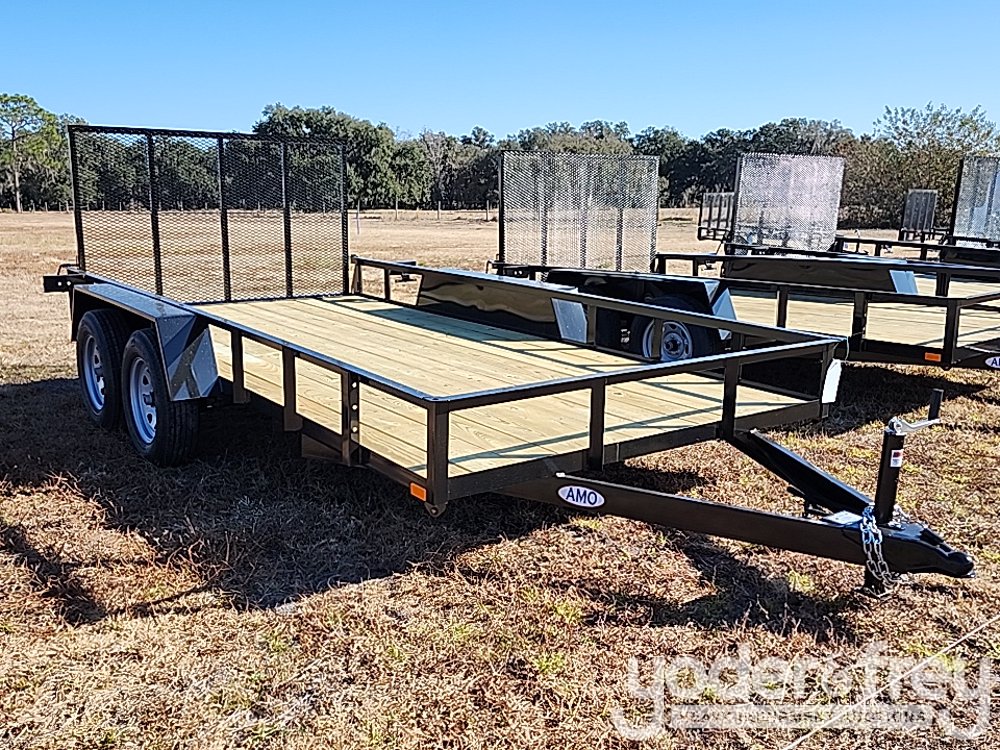 Unused 2026 AMO UT142 82"x168" 7,000lb, Tandem Axle, Gate, 2 Brakes, Treated Wood, Break Away, 7 Way Plug, 15" Tires/Wheels, Pinless LED Spring Assist - 7FNUT1428T1050915