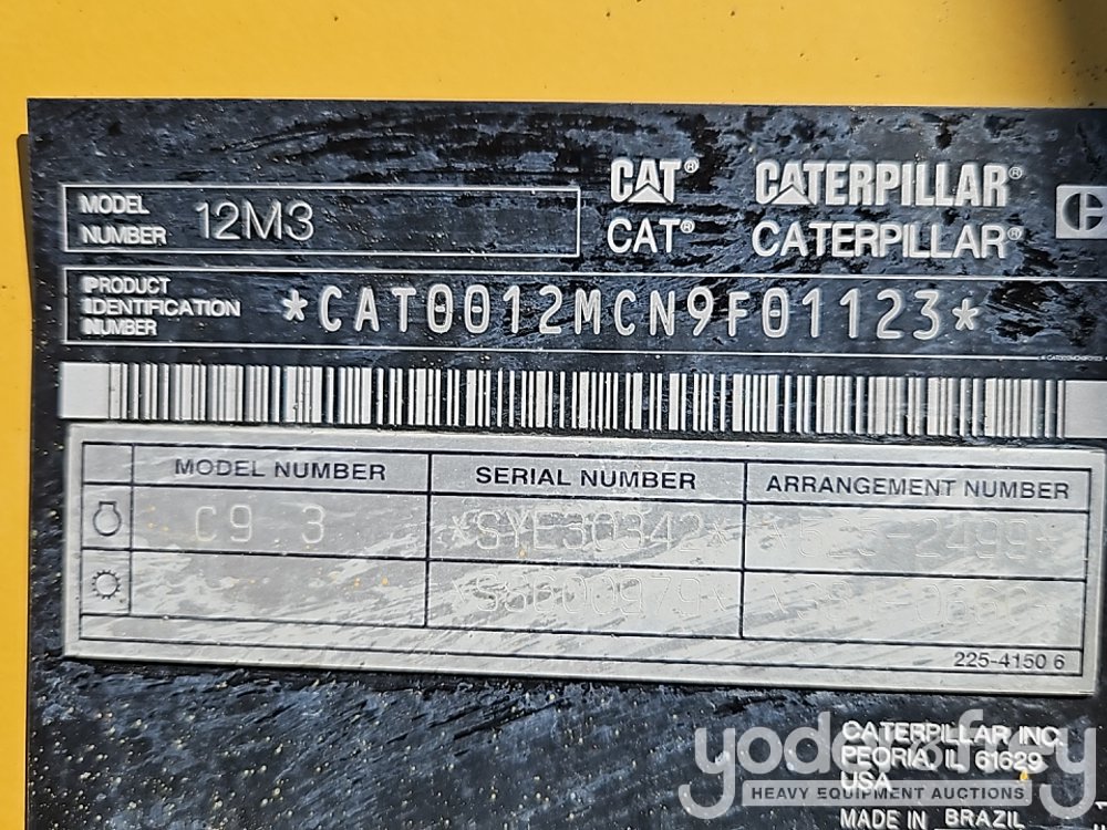 2019 CAT 12M3 Motor Grader, Cab, A/C, Rear View Camera, 14' Moldboard, Scarifier (Meter Reading: 8528 Hours) - CAT0012MCN9F01123