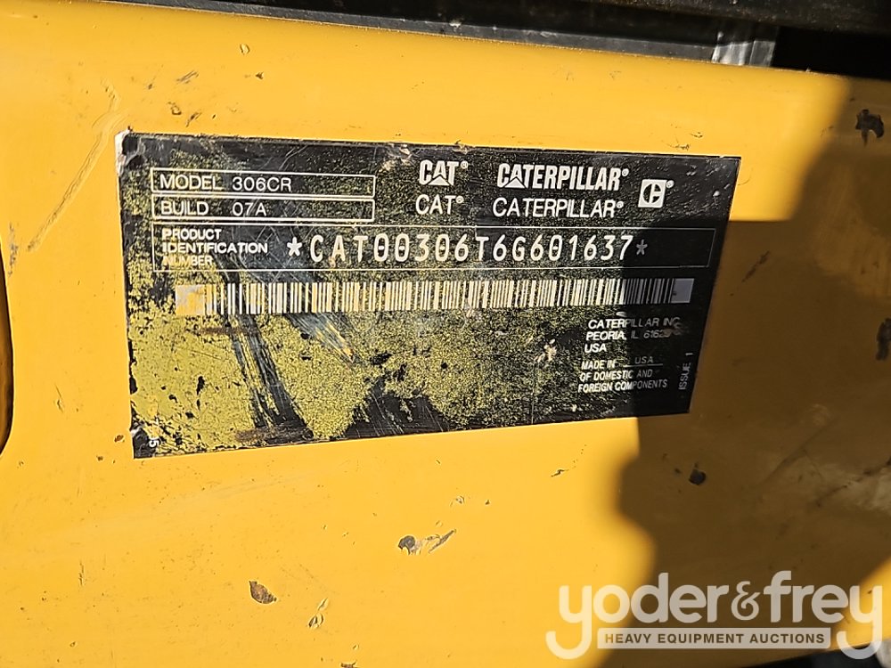 2020 CAT 306CR Excavator, Cab, A/C, Rubber Tracks, Blade, Swing Boom, Aux Hydraulics, QC, Hydraulic Thumb, 24" Bucket, Rear View Camera (Meter Reading: 3139 Hours) - CAT00306T6G601637