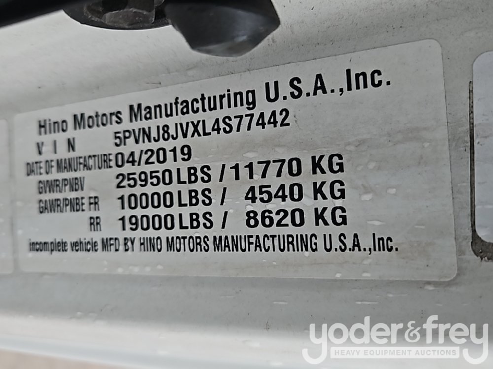 2020 Hino 268 4x2 Cab & Chassis Truck, 7.6L L6 Diesel Engine, Automatic Transmission, 25,950lbs GVWR, A/C (Meter Reading: 284143 Miles) - 5PVNJ8JVXL4S77442