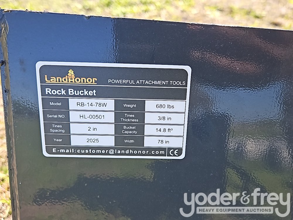 Unused 2026 Landhonor RB-14-78W Rock Bucket to suit Skidsteer - HL-00501