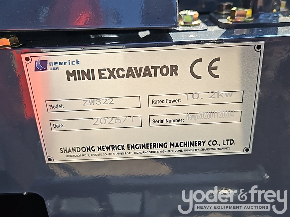 Unused 2026 Newrick ZW-322 Excavator, OROPS, Rubber Tracks, Blade, Swing Boom, Aux Hydraulics, Bucket, Hydraulic Thumb - NEWP202601120204