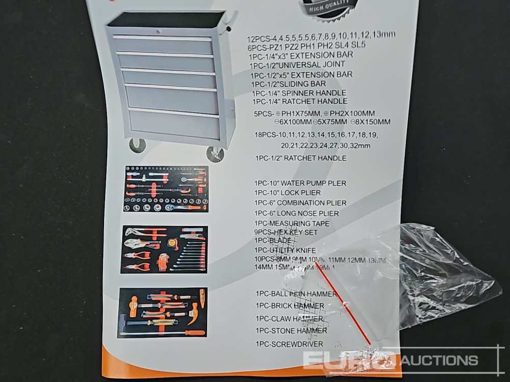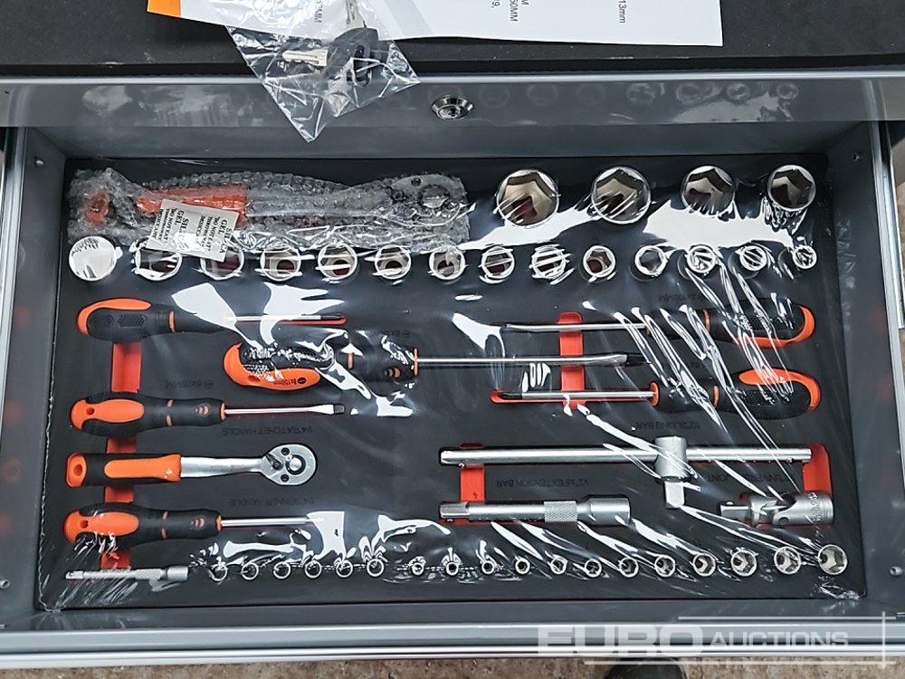 Unused 5 Drawer Tool Box with Tools (Grey) - 650002646