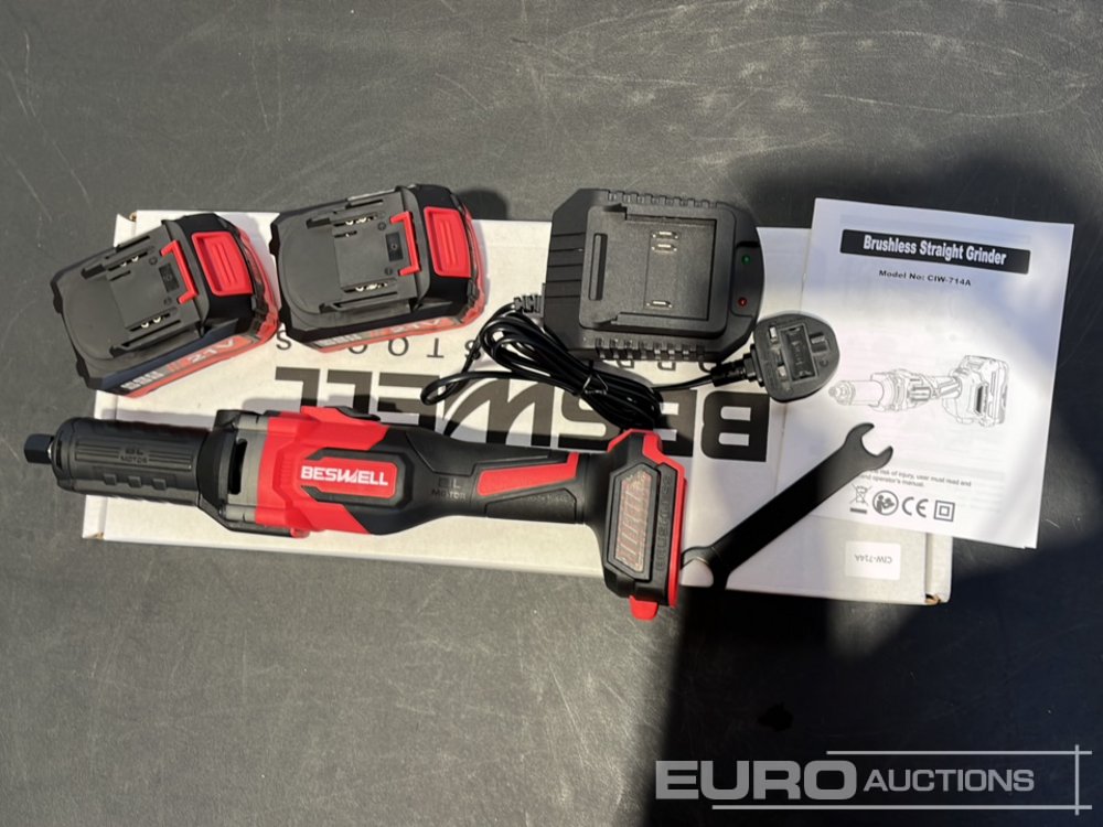 Unused Boss Beswell CIW-714A 1/4" Brushless Die Grinder, 2 x 4.0AH Battery with Charger - 03059