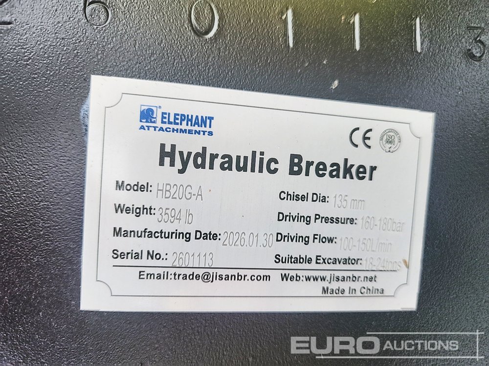 Unused 2026 Elephant HB20G-A Hydraulic Breaker to suit 18-24 Ton Excavator (GCC DUTIES NOT PAID) - CP2601113