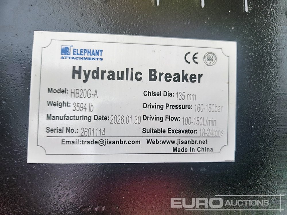 Unused 2026 Elephant HB20G-A Hydraulic Breaker to suit 18-24 Ton Excavator (GCC DUTIES NOT PAID) - CP2601114