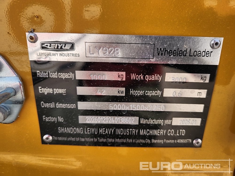 Unused 2026 LEIYU LY928 Wheeled Loader, Bucket, Full Cab (GCC DUTIES NOT PAID) - 20260120240138602
