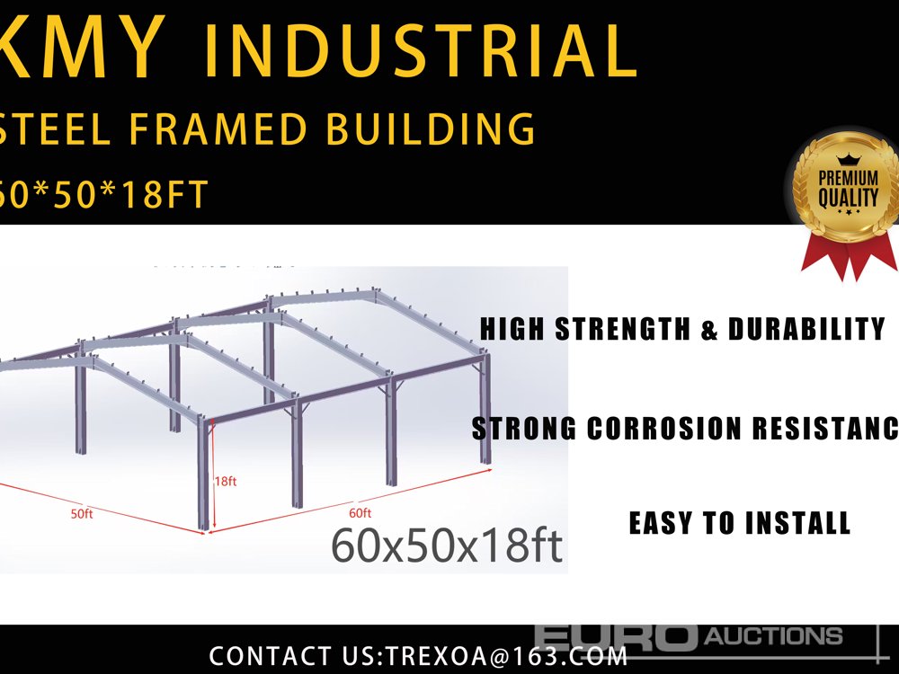 Unused 2025 KMY Industrial 18.3x15.24x5.5m Galvanized Steel Framed Building (GCC DUTIES NOT PAID) - 680007346