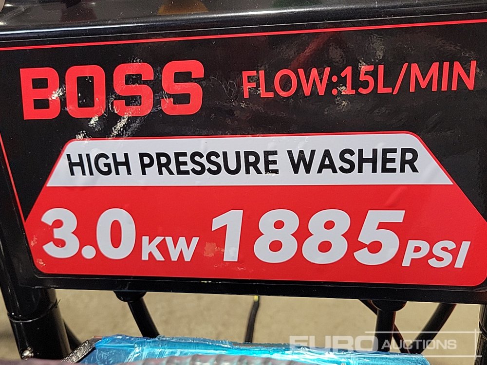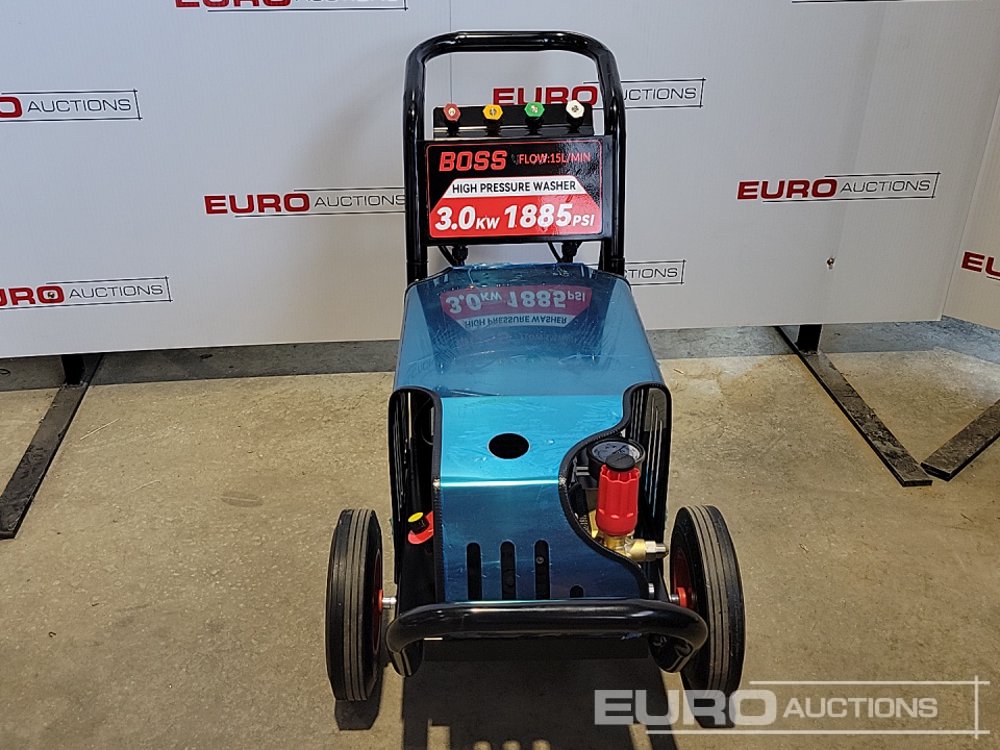 Unused Boss 177003 Electric High Pressure Washer, 1885PSI, 3kW, 15l/min flow, 380V, Hose, Trigger, Washer Bottle, Filter & Fittings - 360355