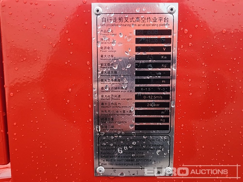 Unused 2025 Everstar EPT0608 Electric Scissor Lift, 8m Working Height, 450kg Platform Capacity, Extending Deck, Non Marking Tyres (Certificate of Conformity Available) - F20241228-68