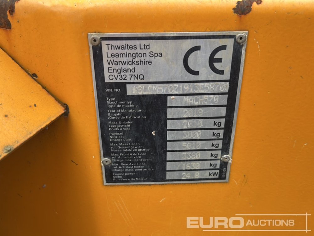 2019 Thwaites 3 Ton Dumper, Roll Bar (Meter Reading: 520 Hours) - SLCM570Z1913E5870