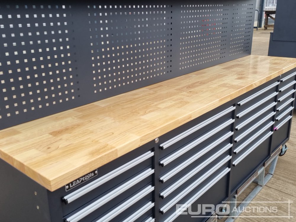 Unused 2026 LEAPTOOLS LT96WB24DRC 96" 24 Drawers Work Bench, Top Cabinet - 140517186