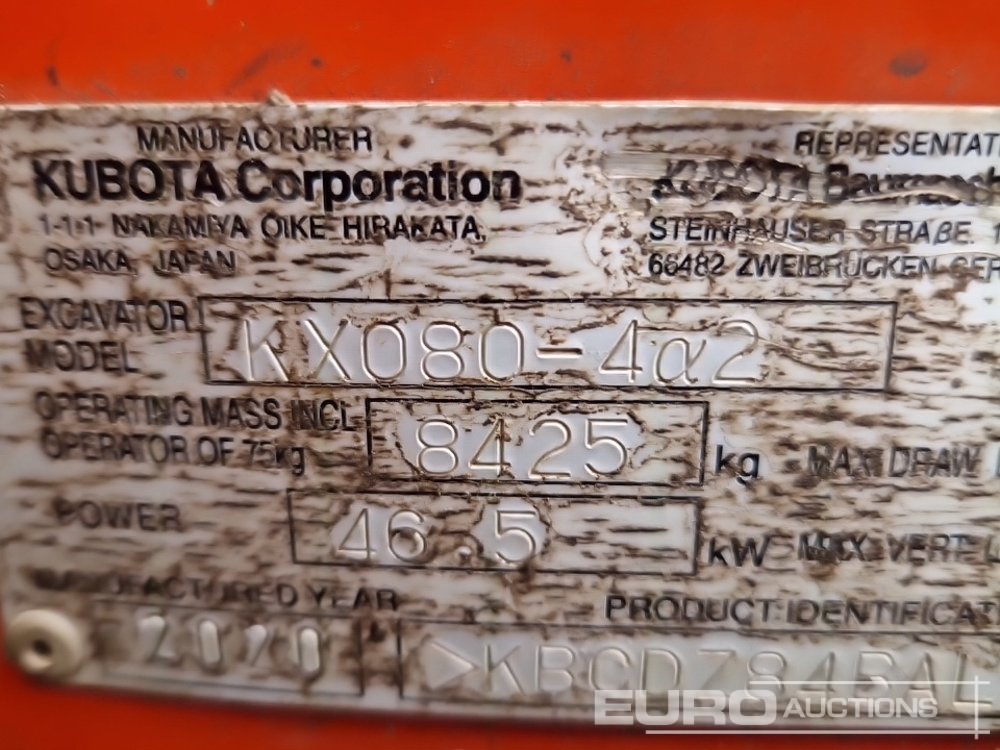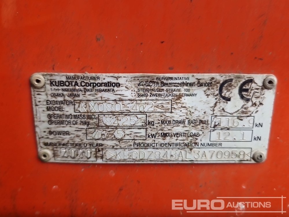 2020 Kubota KX080-4A2