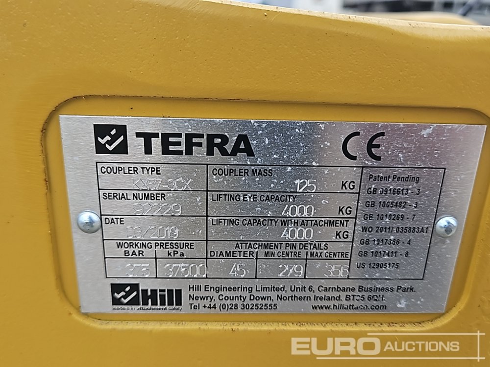 Unused TEFRA Hydraulic Double Lock Quick Hitch 45mm Pin to suit 4-6 Ton Excavator - 92229