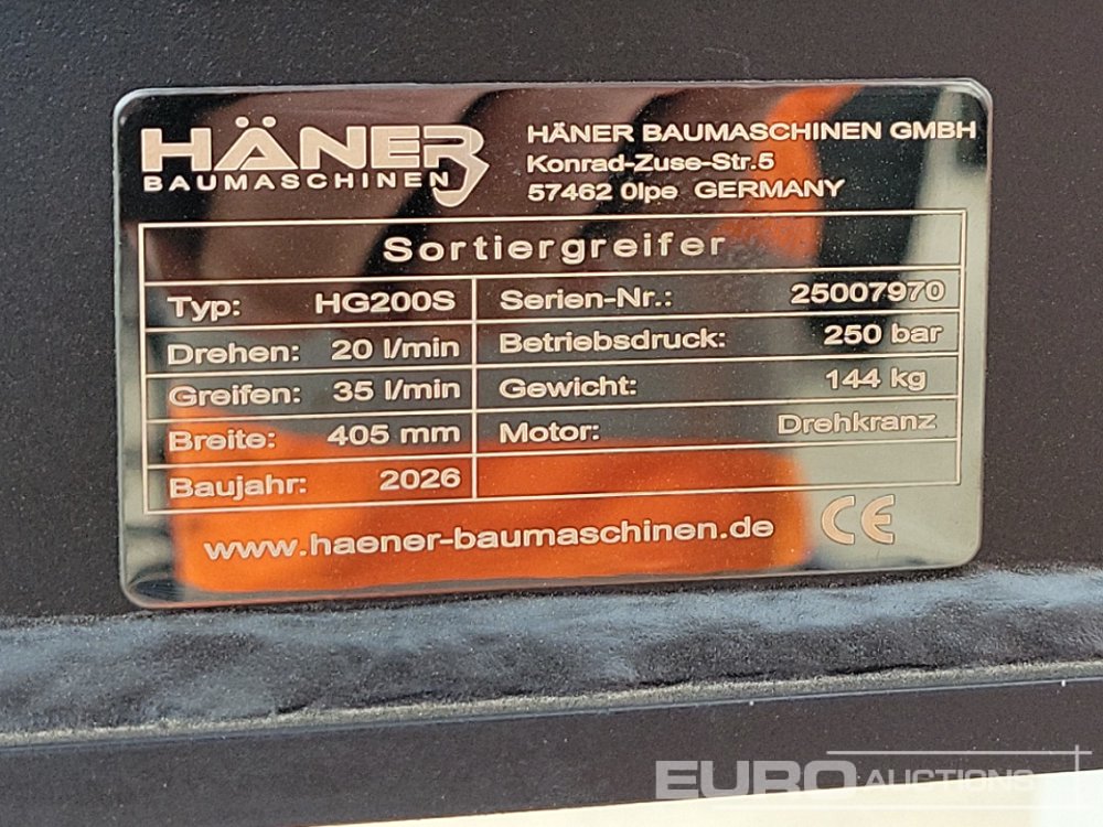 Unused 2026 Häner HG200S Hydraulic Rotating Selector Grab - 25007970