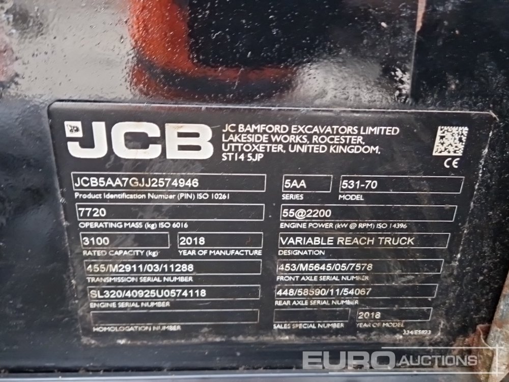 2018 JCB 531-70 Agri Turbo Powershift Telehandler, WLI, Forks - SG18 XHK - JCB5AA7GJJ2574946