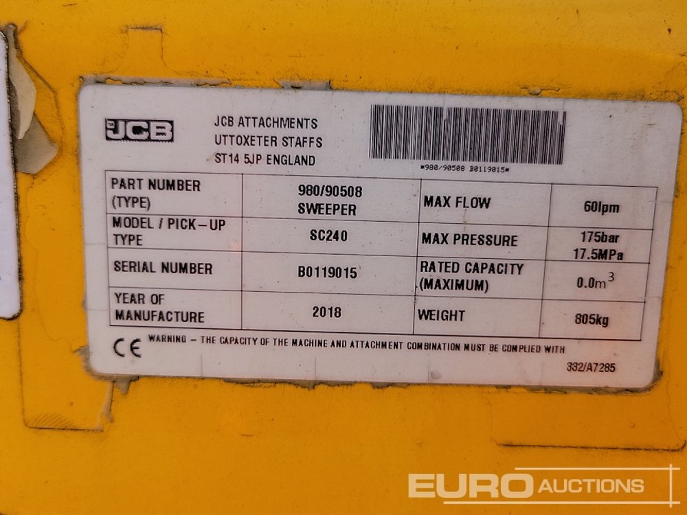 2018 JCB SC240 Hydraulic Sweeper Collector to suit Forklift - B0119015